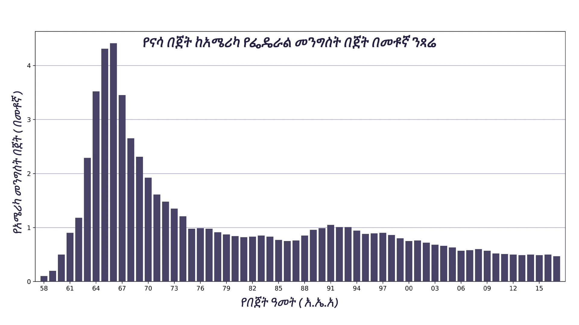 ምስል 2፦ የናሳ በጀት ከአሜሪካ የፌዴራል መንግስት በጀት በመቶኛ ንጻሬ